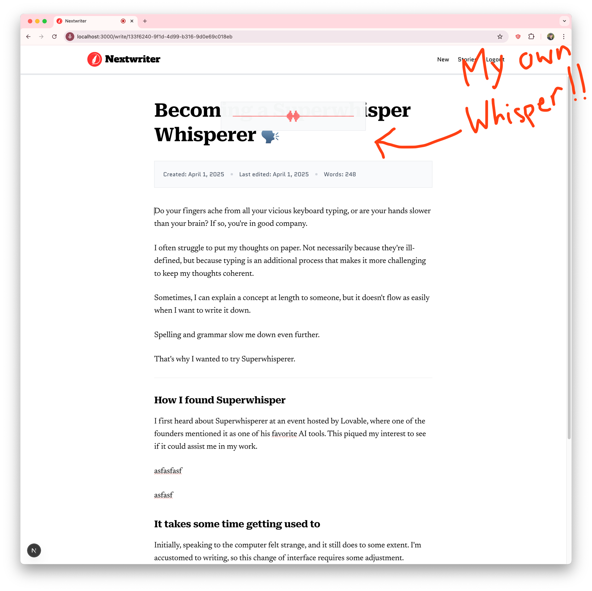 So, instead of writing the words from scratch, I start by transcribing my thoughts with Superwhisper using the voice mode.